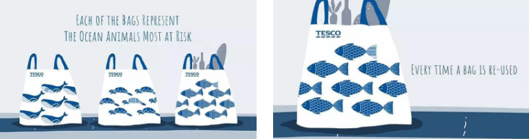 樂購為消費(fèi)者設(shè)計(jì)了一款高顏值的環(huán)保袋,以三種瀕危海洋動(dòng)物為元素,設(shè)計(jì)了海洋藍(lán)色系環(huán)保購物袋。其材料更加環(huán)保,比起我們使用的塑料袋也更結(jié)實(shí)耐用。喚醒大家關(guān)注海洋動(dòng)物的同時(shí),也讓大家用上了環(huán)保材料。